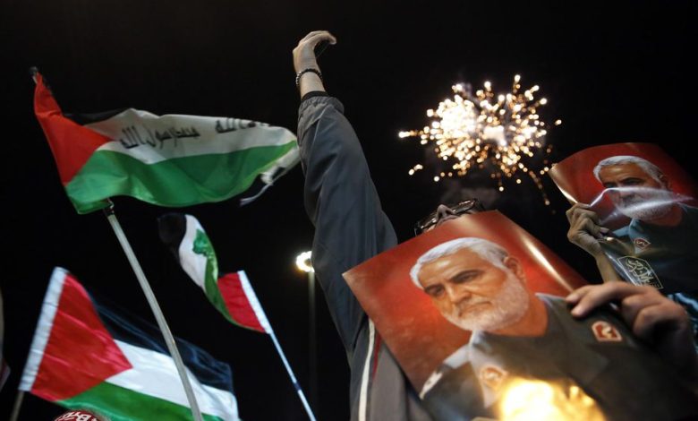palestina y fotos de Qasem Soleimani, antiguo jefe de la Fuerza Quds, rama