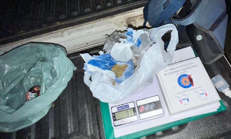 Contando con apoyo del área de investigaciones y comisaría 16ta se ubicó y constató que el envoltorio se trataba de 97 gramos de marihuana prensada, por lo que ambos resultaron detenidos. Derivándose las actuaciones a Brigada Departamental Antidrogas.