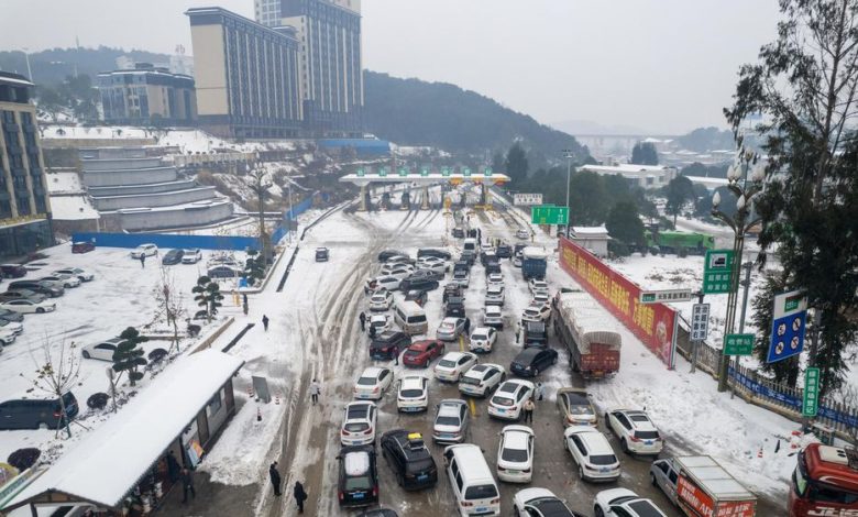 MUNDO | Chuva congelante, neve e gelo complicaram o trânsito no Centro, Leste e Sul da China enquanto milhões viajam antes do feriado do Ano-Novo Lunar do Dragão. Províncias de Hunan e Hubei enfrentaram o pior, cancelando viagens de trens e atrasando voos. As fotos são da @AFP. pic.twitter.com/Fnurjgzjwl