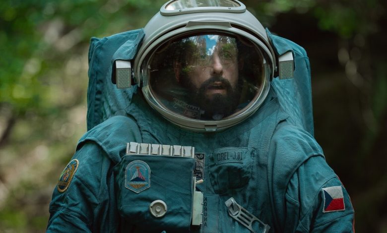 Aquí Sandler es Jakub Procházka, el afligido astronauta del título que está a medio camino de su misión espacial, que es descubrir algo sobre las partículas que hace cuatro años forman una nube violeta en el cielo. Le quedan seis meses para volver a casa y pasa los días en un ambiente sin gravedad, con problemas en las cañerías y problemas para dormir.