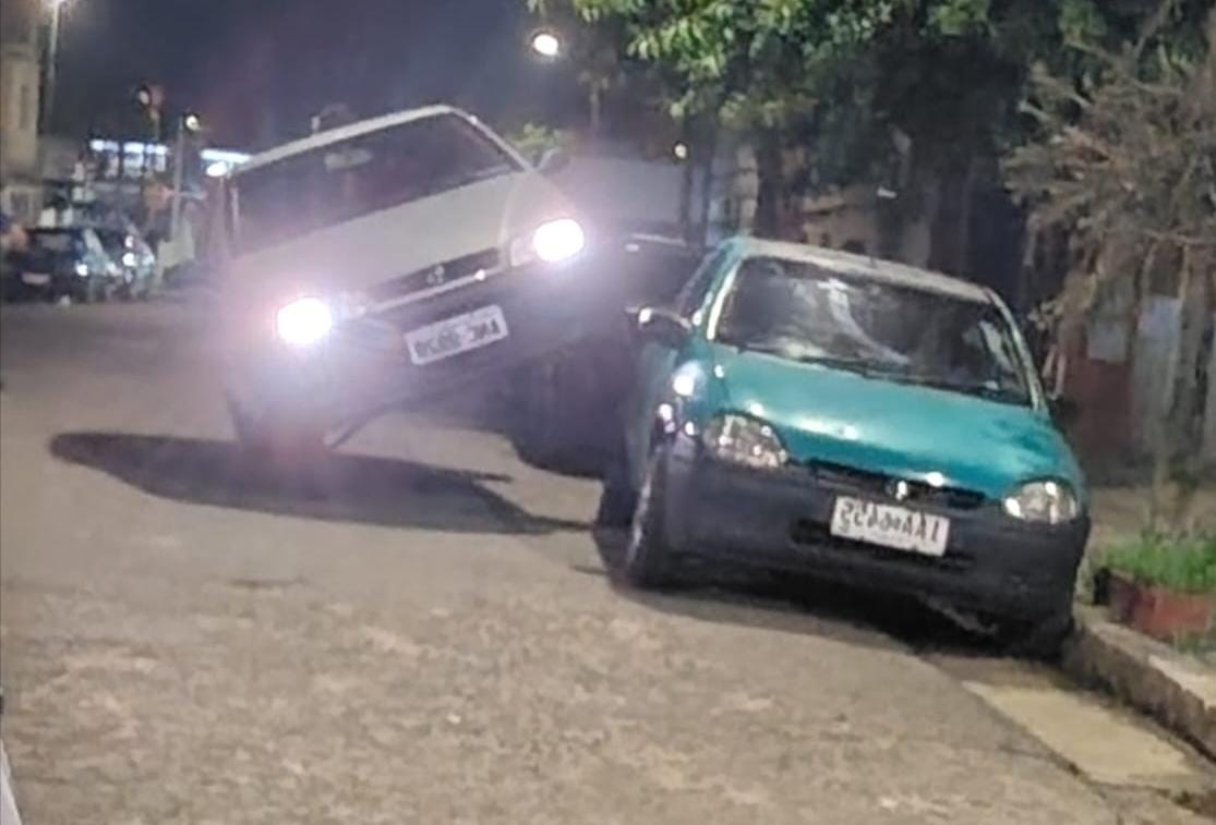 En la madrugada del domingo, un conductor decidió que su vehículo podía desafiar la gravedad: terminó estacionando en dos ruedas en la intersección de Vieira y Tucumán, cerca de un boliche bailable de Melo.