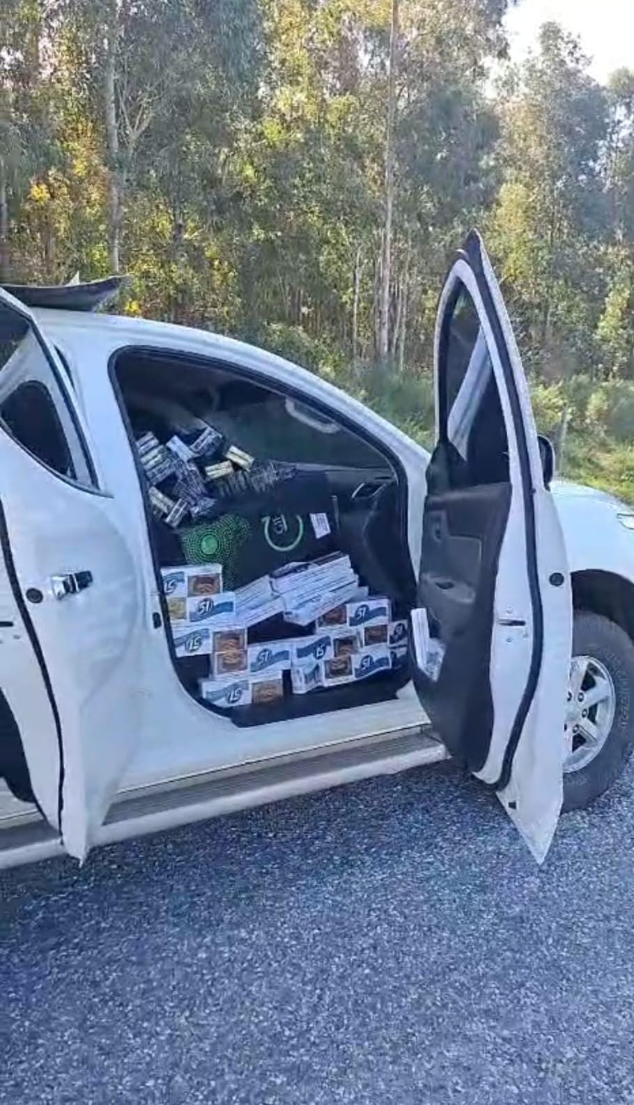 El operativo fue realizado por efectivos del área Investigativa III de la Jefatura de Policía de Cerro Largo, quienes avistaron al vehículo de la foto en Aceguá y realizaron un seguimiento discreto por la ruta 8 hasta detenerlo en Melo, incautando la voluminosa carga. Las autoridades no brindaron aún el número exacto de cajillas ni el valor estimado de la mercadería incautada.