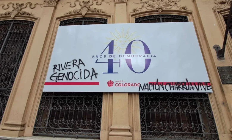 Vandalizaron la sede del Partido Colorado por homenaje a Rivera: de “genocida” a “nación charrúa vive”