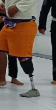 A pesar de haber conseguido su primera prótesis a través de MIDES y la última por medio del BPS mientras trabajaba, al quedarse sin empleo la cobertura se interrumpió. Su prótesis se rompió y, para poder seguir desplazándose, tuvo que improvisar: actualmente camina con su pierna sostenida únicamente con precintos y cinta aisladora.