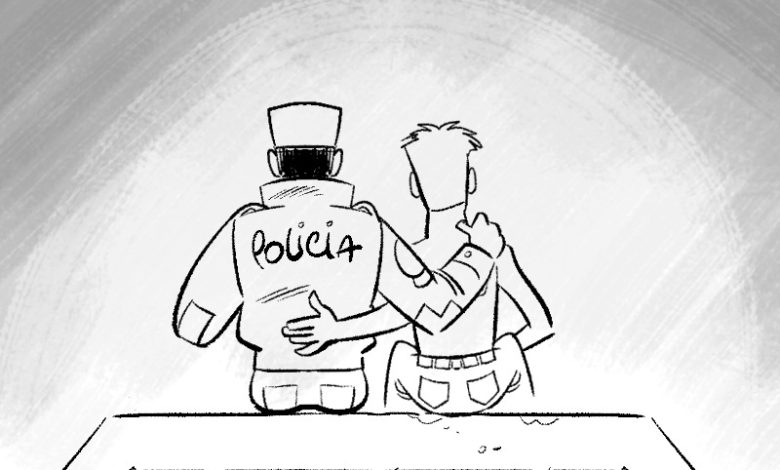 El dibujo se inspira en el accionar de policías y guardavidas que lograron evitar que un joven atentara contra su vida en el puente del ferrocarril sobre el río Olimar. Con una frase breve y cargada de sentido, el artista transforma ese momento en un mensaje de acompañamiento y esperanza.
