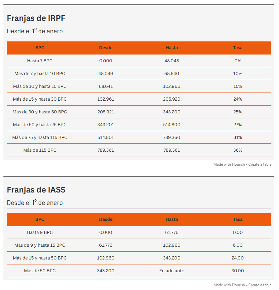 Así quedaron las nuevas franjas de IRPF y del IASS con respecto a los ingresos mensuales (el impuesto se liquida anualmente):