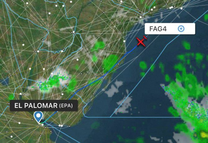 La aeronave había partido a las 8.02 y llevaba aproximadamente cinco horas de vuelo —lo que incluyó el sobrevuelo de Uruguay— cuando se produjo el incidente.