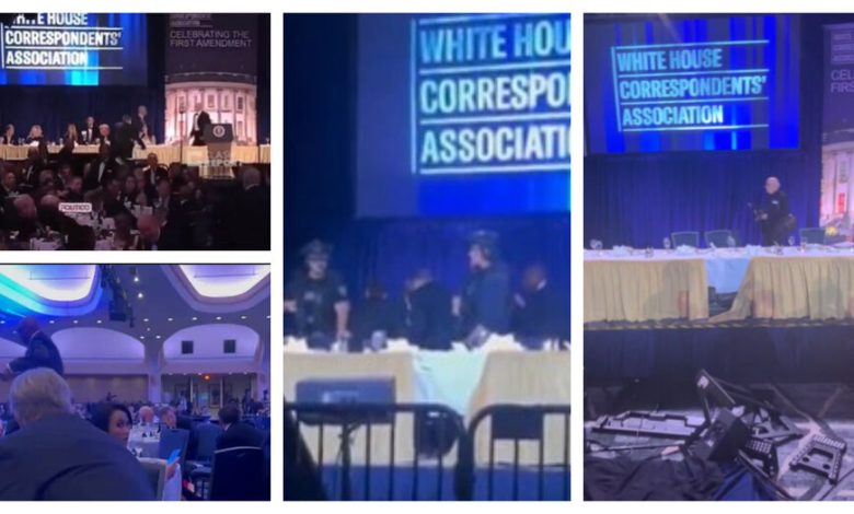Según puede verse en imágenes registradas por distintos periodistas que estaban en el lugar, equipos del servicio secreto desenfundaron armas y tomaron posiciones en el escenario donde Trump había estado sentado durante la cena antes de que lo evacuaran.