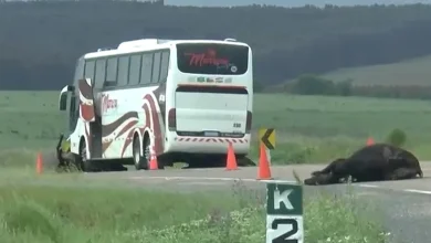 Un ómnibus chocó contra una tropa de 11 vacunos en el kilómetro 209 de la Ruta 14, a unos nueve…
